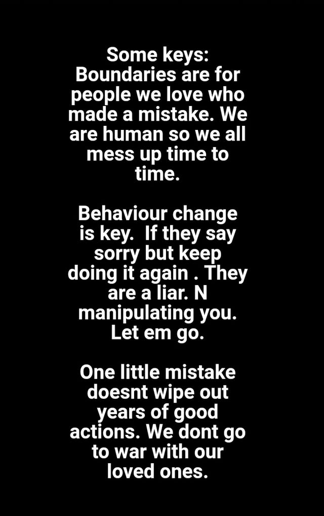And if they have done something seriously bad. Then call the police. Don’t like try set a boundary with a crime. That’s not what they are for. They are for like little mistakes. Words they said that hurt and they said it out of anger or something. Not doing something they said theyd do. That type of stuff. Like normal relationship things. Not crimes lol.