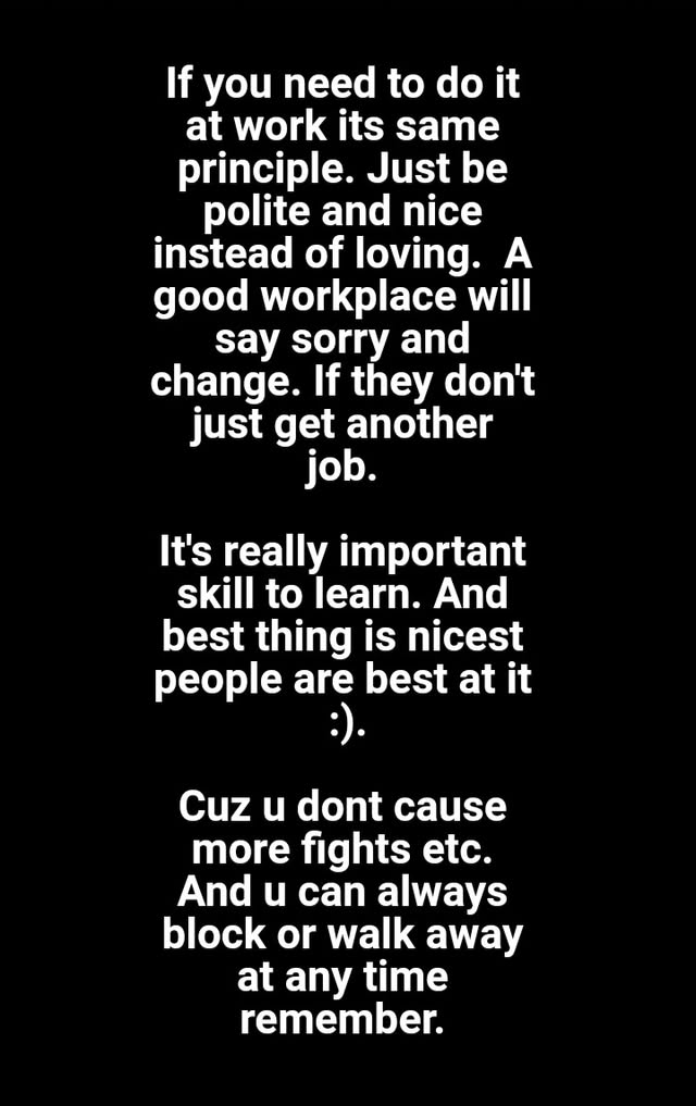 If they don’t care about you. Shouting won’t change them. So its great to do it gently. Thus avoiding your own stress levels building. And then you can walk away from them anyway. Way easier than having a fight.